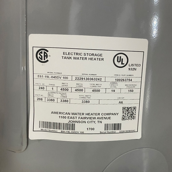 CALENTADOR PAR AGUA AMERICAN PRO 19G E61-19L-045D