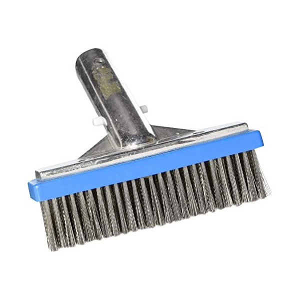 APLICACIÓN: Limpieza Piscinas CARACTERÍSTICAS: Cepillo de algas con cerdas de acero inoxidable. Perfecto para eliminar algas duras en superficies de yeso. El mango se adapta a la mayoría de los postes Incluye 1 cepillo por paquete.
