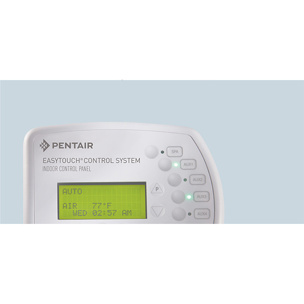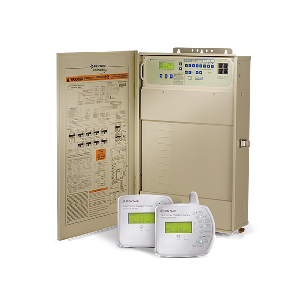 EasyTouch ofrece un control completo de todas las funciones de la piscina o el spa, incluyendo funciones como el control de la iluminación en colores. También admite el clorinador de sal IntelliChlor®. Todos los sistemas EasyTocuh incluyen un panel de control fácil de usar que está incorporado en el recinto para exteriores. Además, estos sistemas funcionan con la interfaz ScreenLogic2® que permite tener el control total a través de una computadora o dispositivo móvil.
