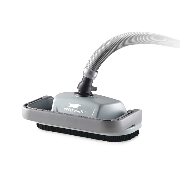 El limpiador Great White de Kreepy Krauly frota y aspira la suciedad más difícil. Su mecanismo de accionamiento de cerdas tiene la fuerza para desprender la suciedad más rebelde, mientras que la potente acción de aspiración elimina los desechos grandes y pequeños.