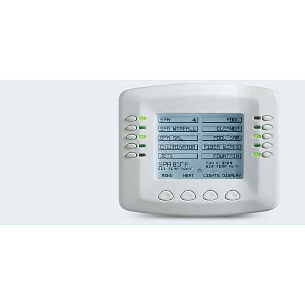 - Fácil de manejar: un sistema IntelliTouch asume el trabajo de programar y operar el calentamiento de la piscina y spa, la filtración y los ciclos de limpieza. También ofrece el control de un solo toque de funciones adicionales.